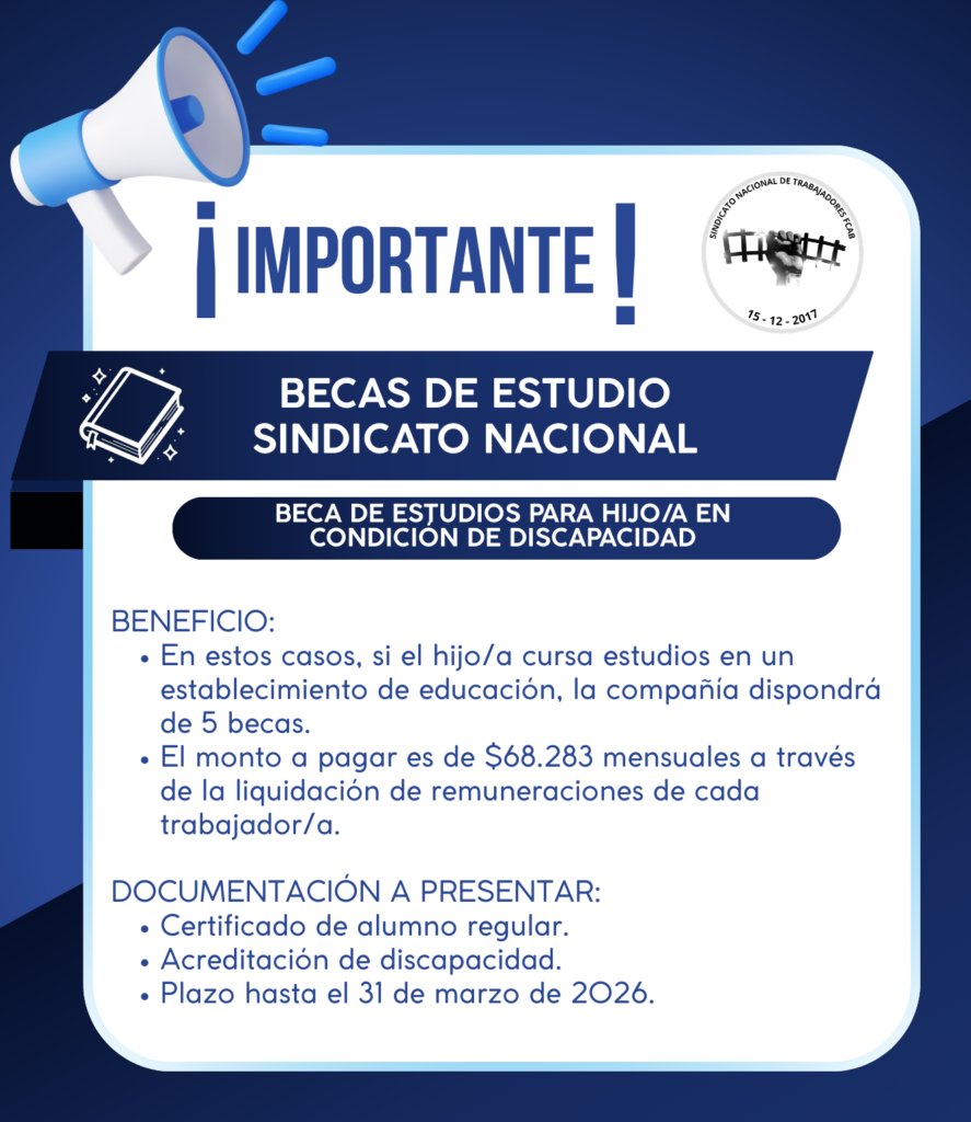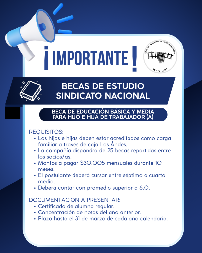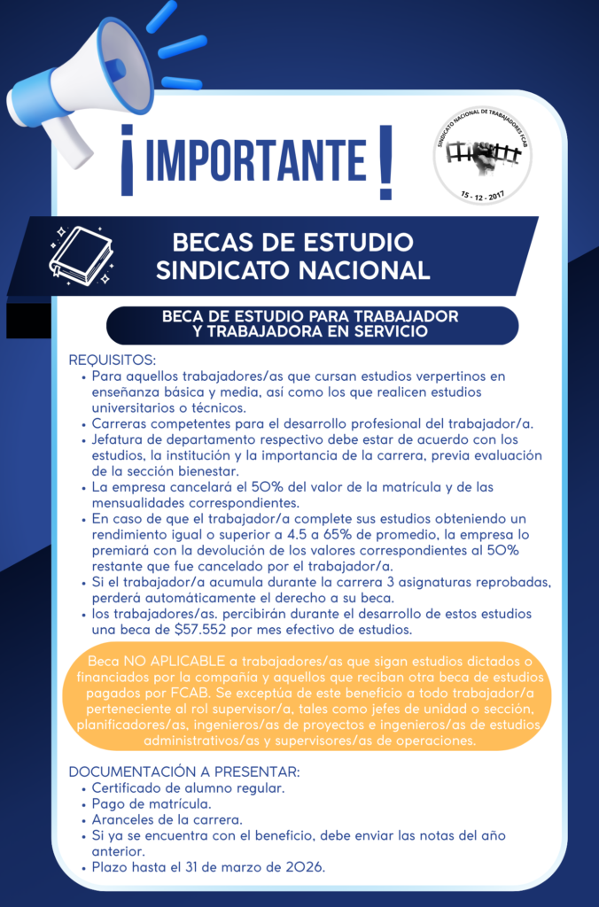 Revisa las becas de estudio 2026 que tiene disponible el Sindicato Nacional y FCAB